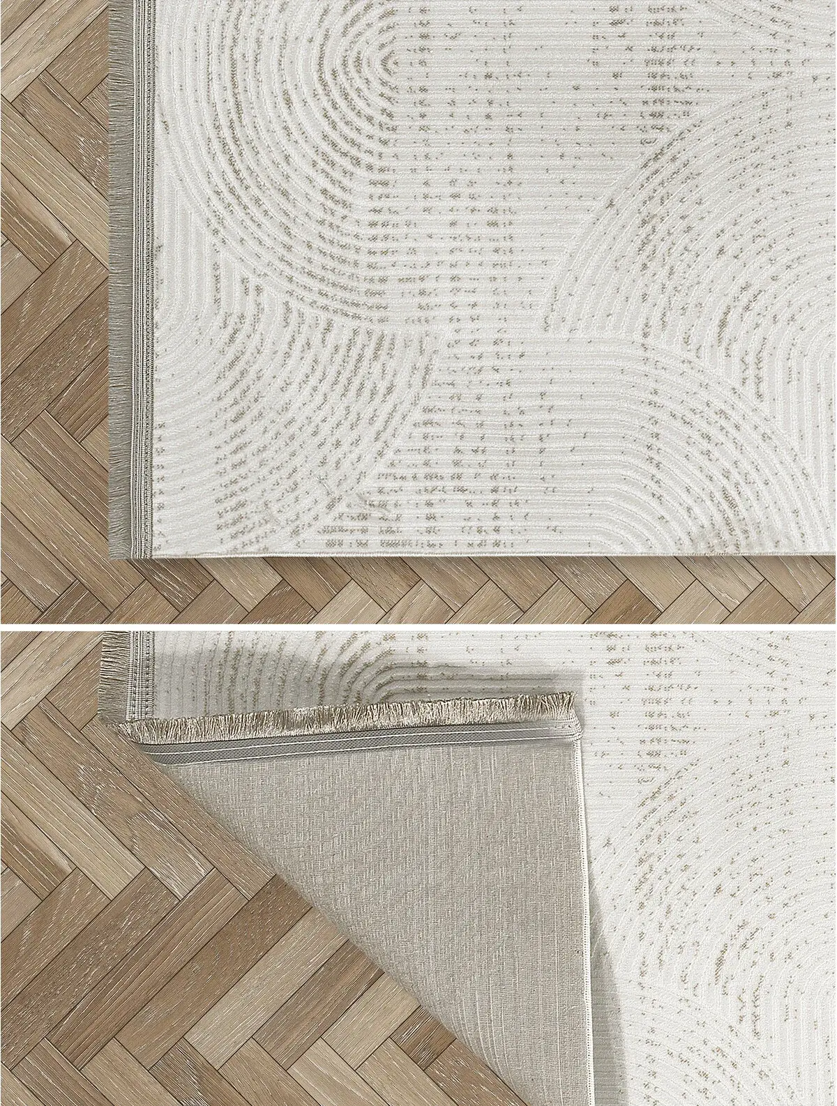 Calme Serisi Bej Renk Yıkanabilir Kaymaz Dokuma Halı T-Hy07