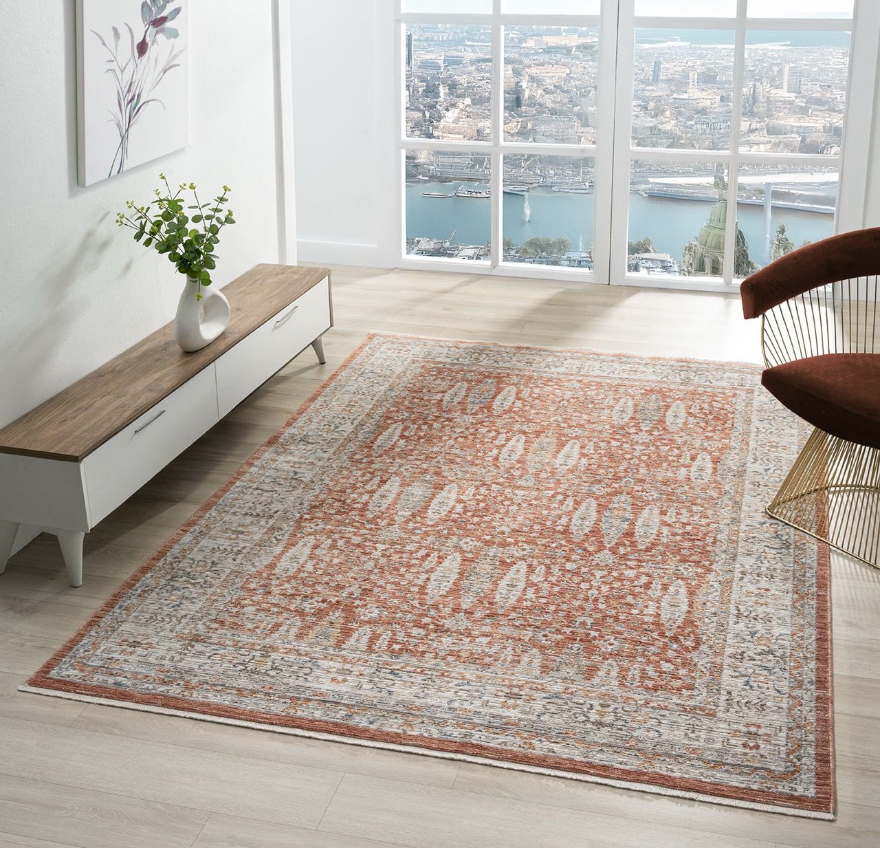 Vintage Serisi Kiremit Renk Eskitme Desen Dokuma Halı S-P10207K